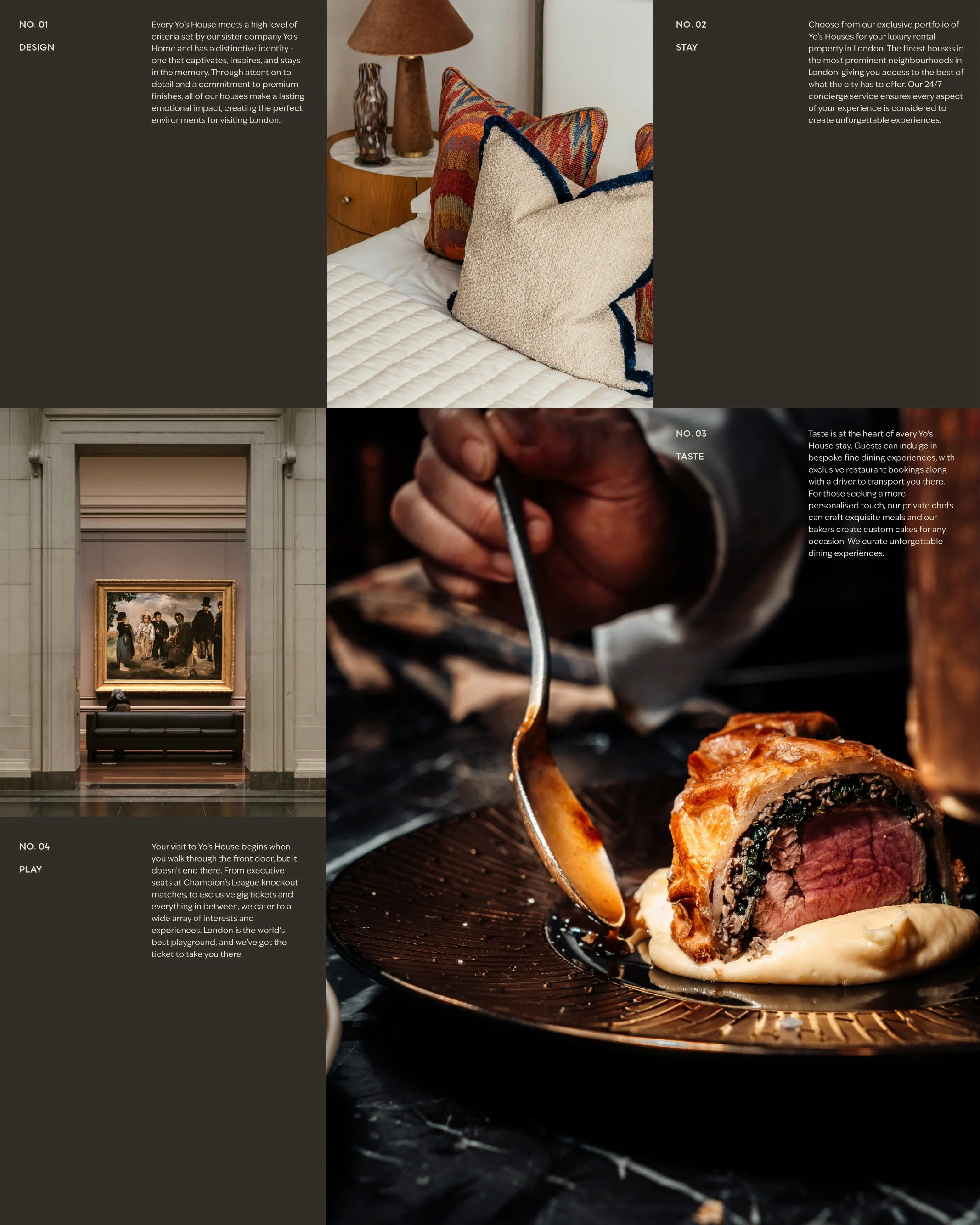 Yo’s House is a luxury short-stay platform blending refined interiors with tailored guest experiences. With Yo’s Home designing each property, the brand needed to express both exclusivity and warmth. We clarified its positioning and built an identity that captured the feeling of staying somewhere considered, curated and quietly exceptional.